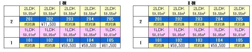 Ⅰ・Ⅱ 202号室 ※203・204号室は反転タイプ(59.58㎡)