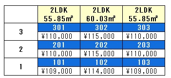 109,000円~.115,000円 (2LDK)