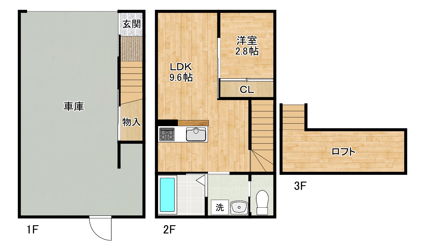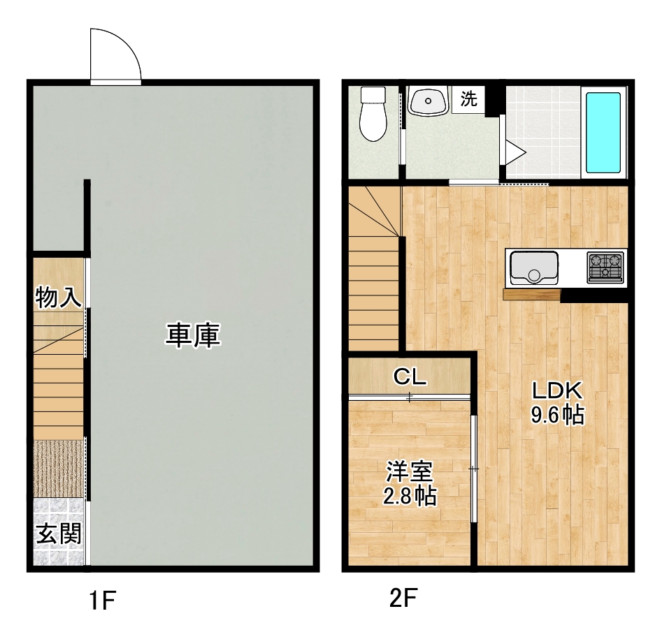 ★ガレージ付き1LDKの賃貸物件★駐車場1台無料!