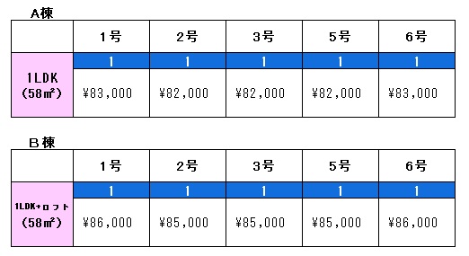 82,000円~86,000円 (1LDK)