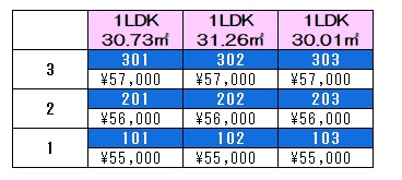 55,000円~57,000円 (1LDK)