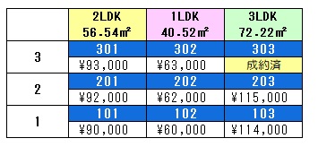 90,000円~93,000円 (2LDK)