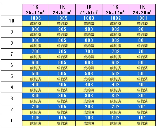 106号室~1106号室 ※各階ごとにカラー違います。