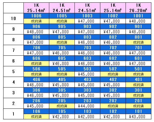 105号室~1105号室 ※各階ごとにカラー違います。